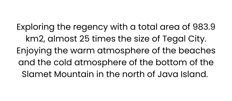 Tegal Regency (Javanese: Hanacaraka: ꦠꦼꦒꦭ꧀, Pegon: تٓڮل, translit. *Tagal*) is a regency located in the northwestern part of Central Java Province, Indonesia, covering an area of 878.79 square kilometers. As of mid-2024, the population of Tegal Regency is 1,727,497.